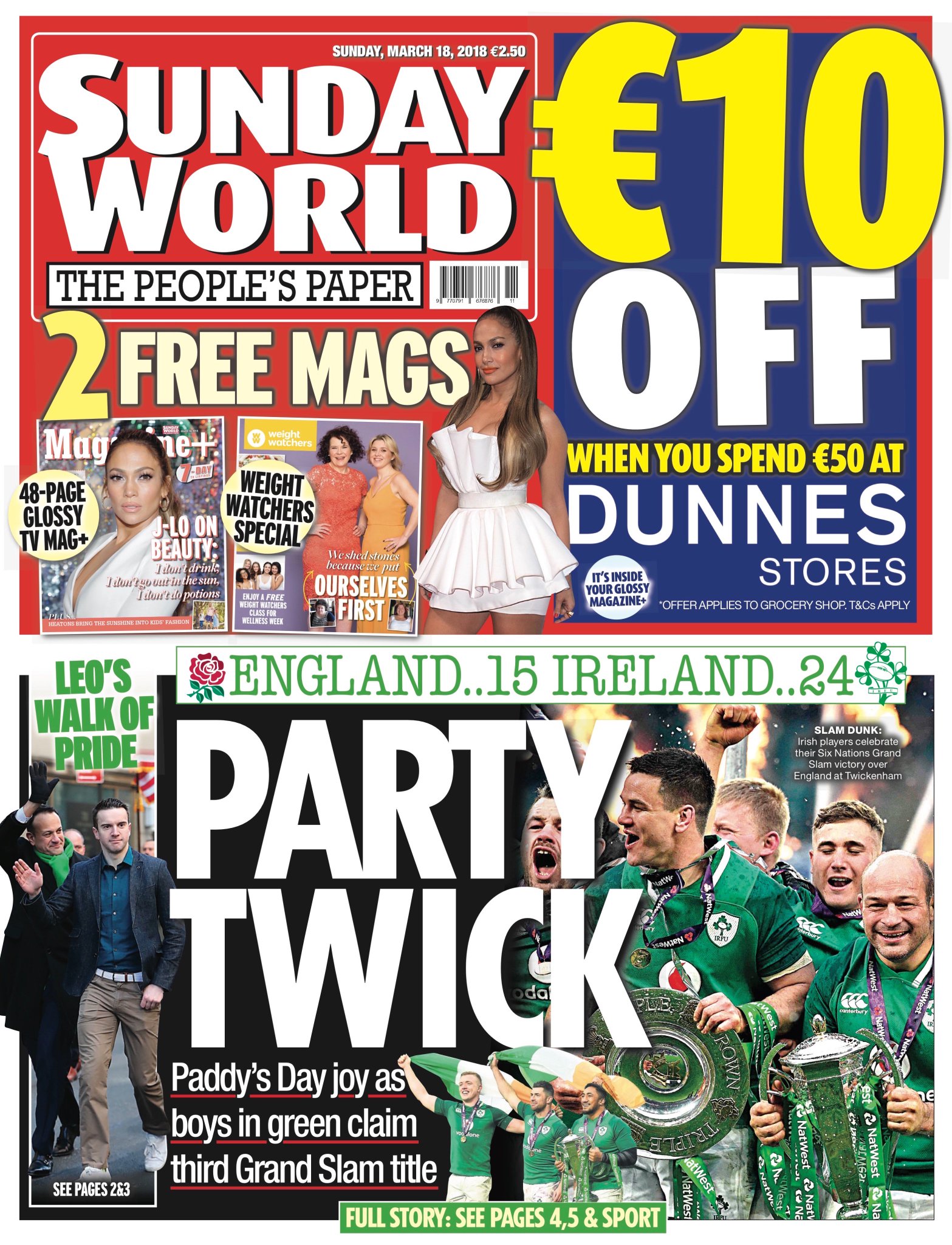 Sunday World Ni Front Page : Newspaper headlines: Javid flies home, and tributes to ... - A woman who swapped diamonds for pebbles in a £4.2 million theft and then tried to blame the crime on her sister is facing.. Find stories, updates and expert opinion. Breaking news, analysis, features and debate plus audio and video coverage on topical issues from around northern ireland. Andalucía masters hosted by the sergio garcia foundation. Get the latest northern irish news from bbc northern ireland: Real club valderrama, sotogrande, spain.